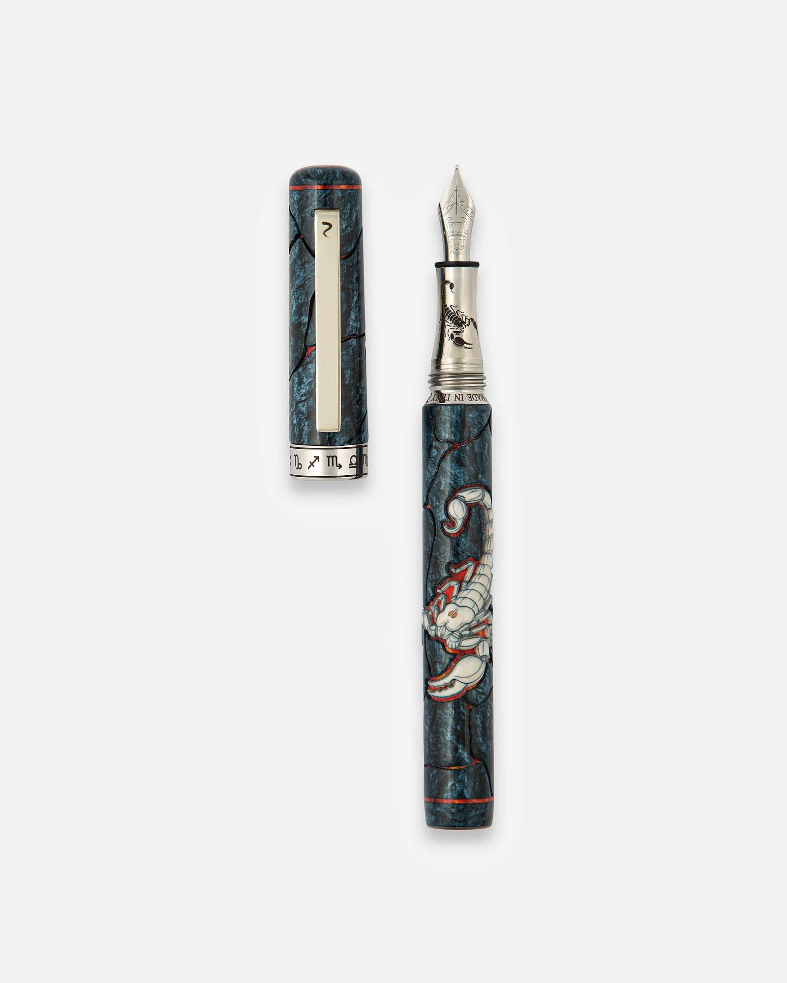 La penna Scorpione elemento di acqua riflette mistero, fascino e passionalità. Ogni pezzo nasce da