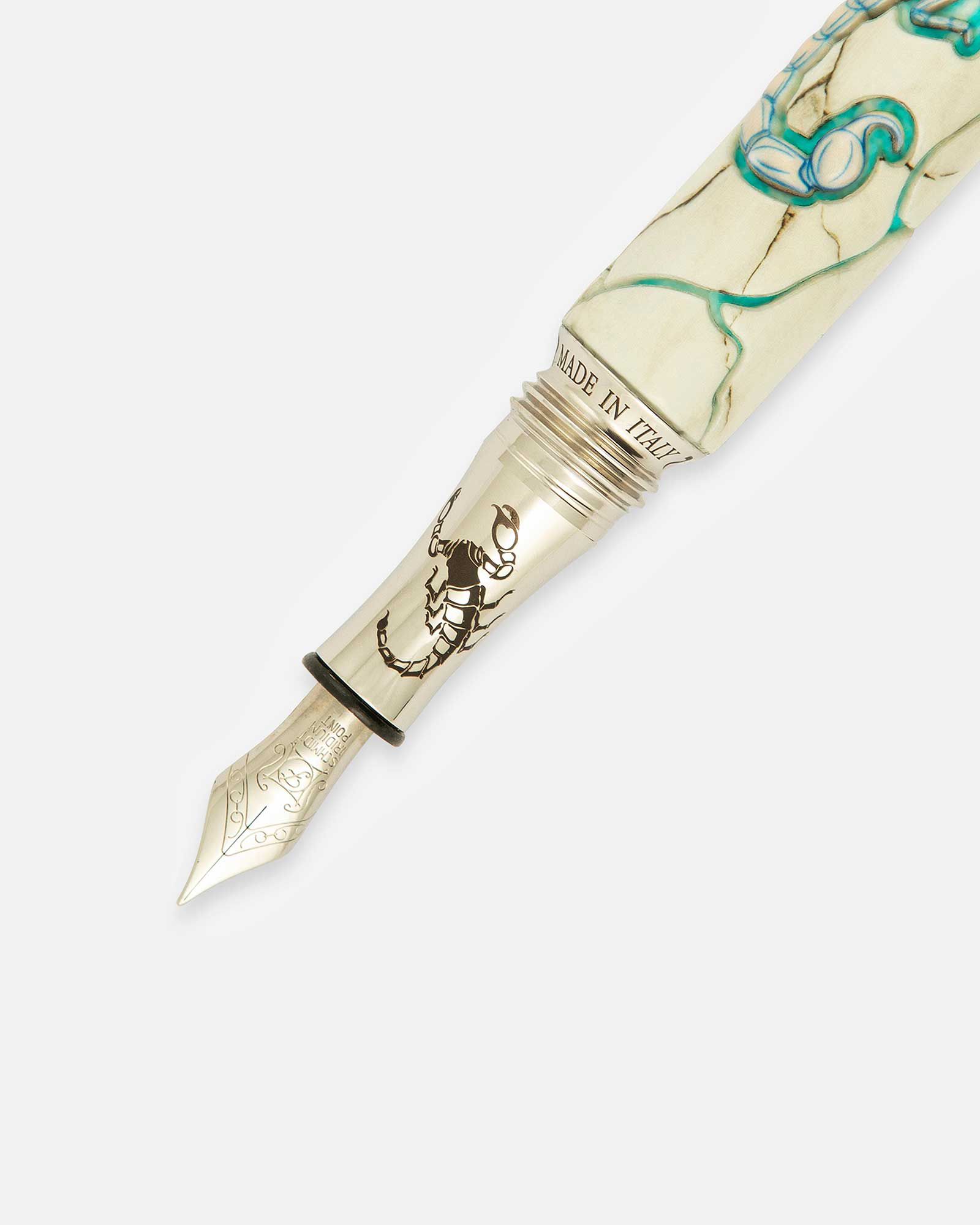 La penna Scorpione elemento di acqua riflette mistero, fascino e passionalità. Ogni pezzo nasce da