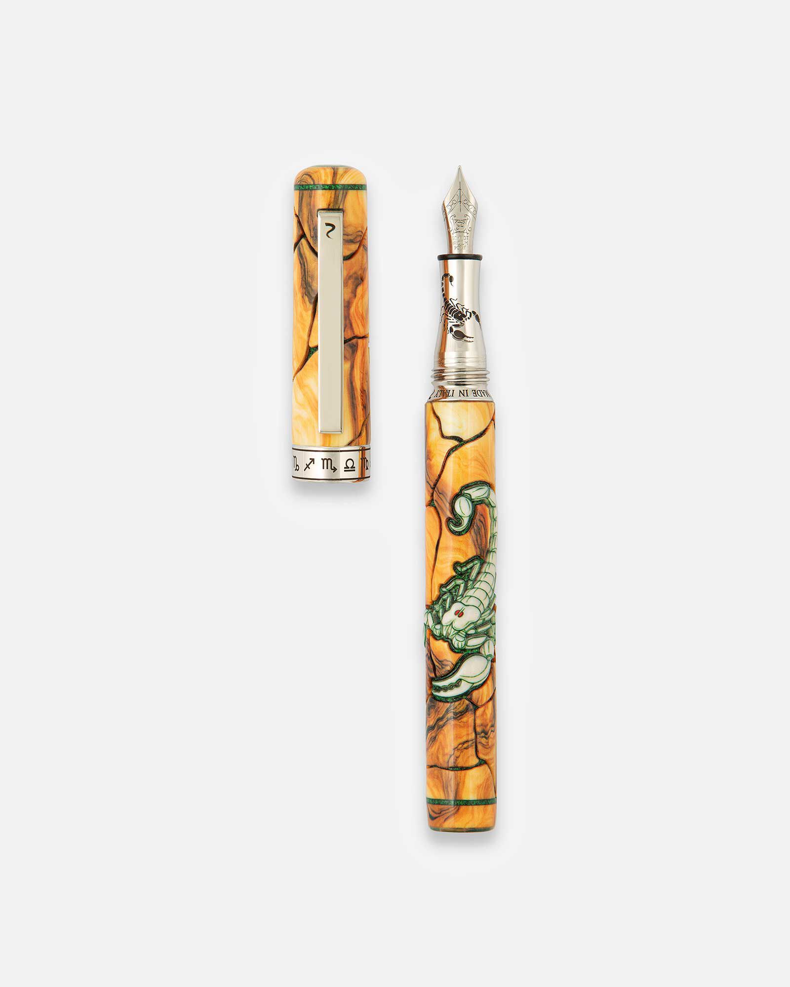 La penna Scorpione elemento di acqua riflette mistero, fascino e passionalità. Ogni pezzo nasce da